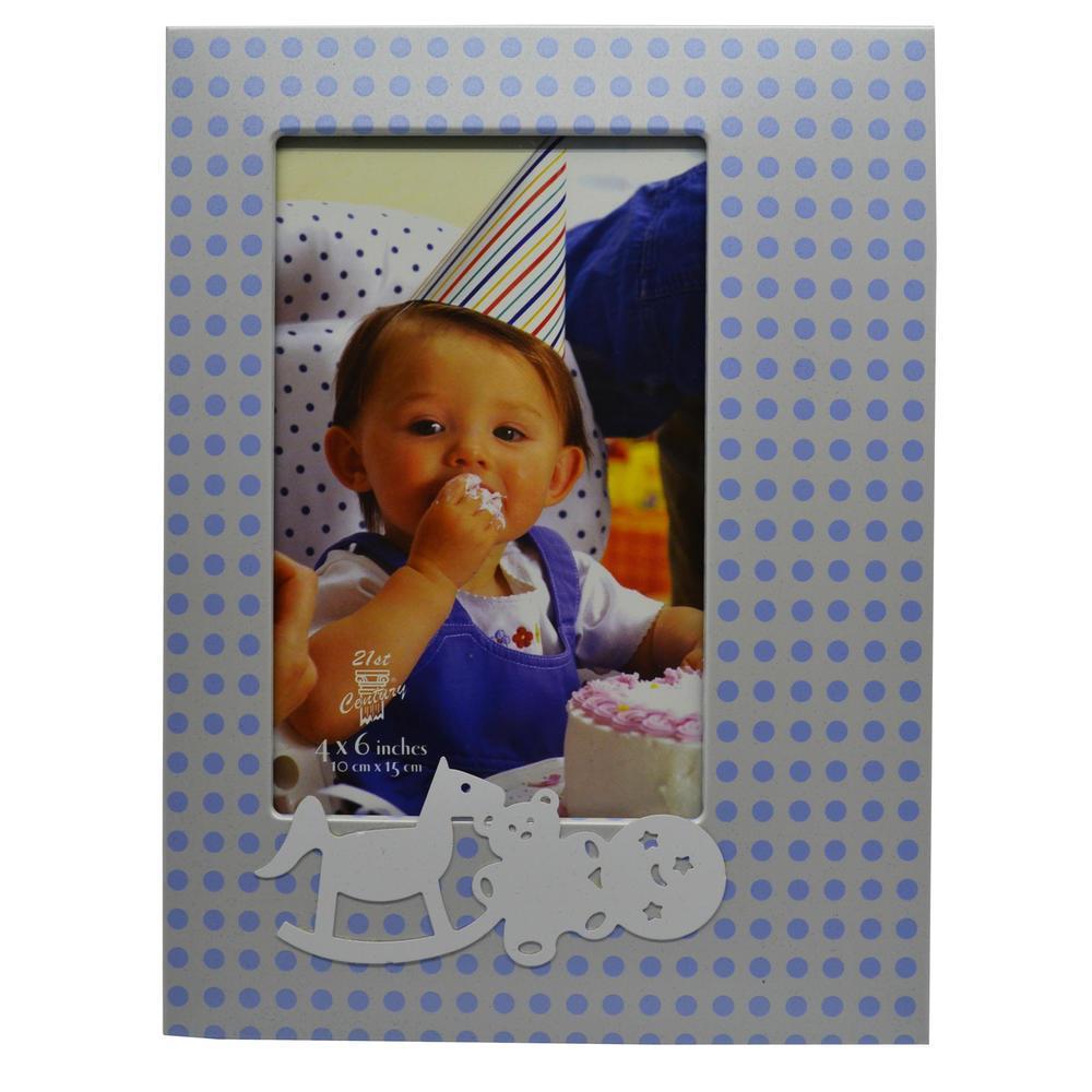 Λευκή με γαλάζιο πουά και σχέδιο κουνιστό αλογάκι και αρκουδάκι. Αποτυπώστε τις πιο χαρούμενες στιγμές των μικρών μας φίλων και καντε τες μερος της καθημερινότητας σας!Ιδανική πρόταση για δώρο βάπτισης !