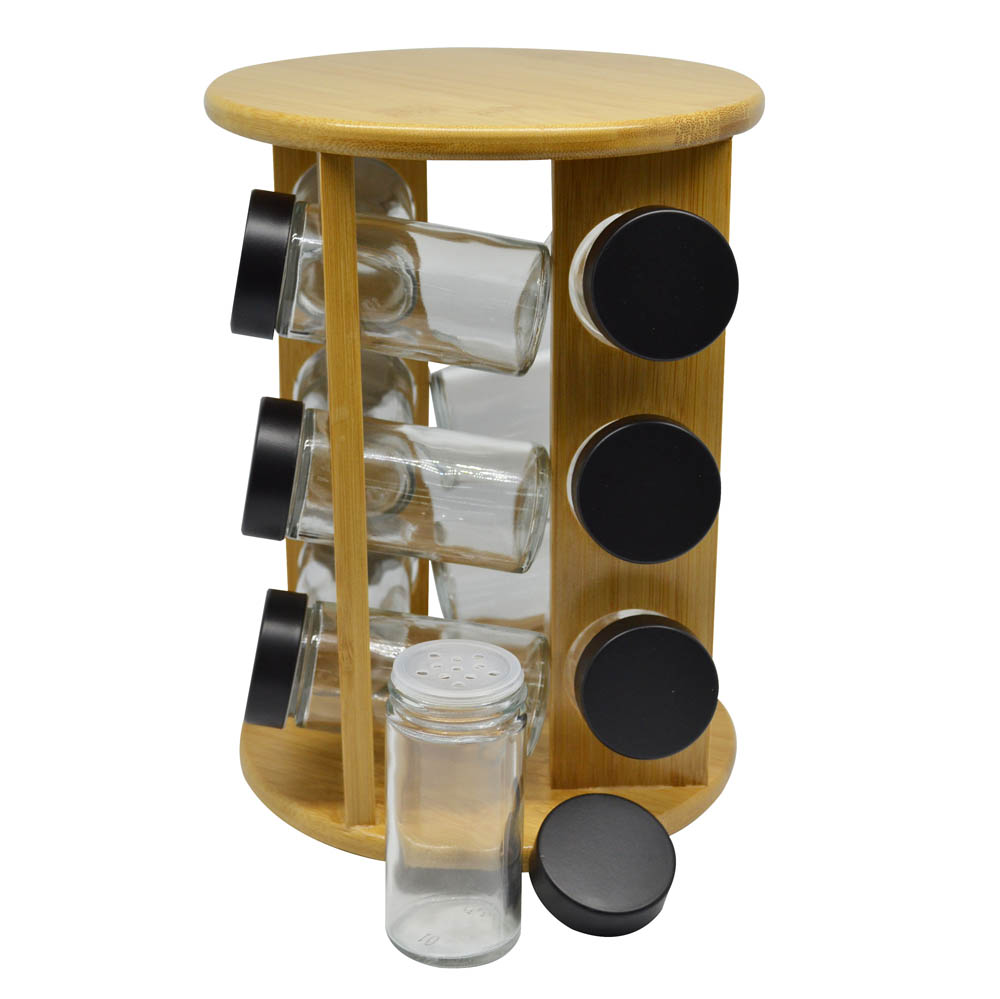 Βάση από ξύλο μπαμπού περιστρεφόμενη, η οποία διαθέτει δώδεκα γυάλινα κατάλληλα για αποθήκευση μπαχαρικών.. Χρηστικά αντικείμενα με μοντέρνο και κομψό σχεδιασμό απαραίτητα για κάθε κουζίνα. Οργανώστε τον χώρο σας διαλέγοντας ανάμεσα από την μεγάλη ποικιλία της σειράς μας!