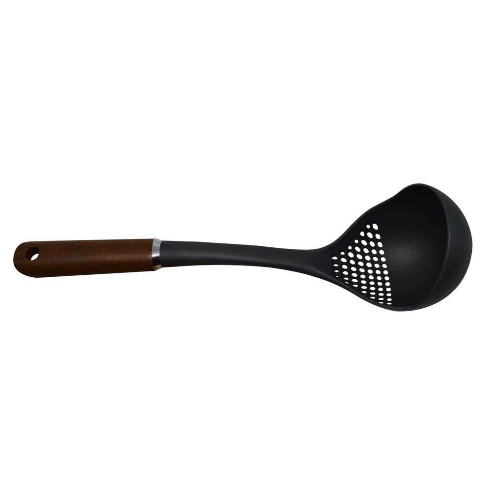 Κουτάλα βαθιά από υψηλής ποιότητας πλαστικό naylon, ασφαλές στη χρήση και ανθεκτικό στις υψηλές θερμοκρασίες (έως 220 βαθμούς C). Διαθέτει ξύλινη εργονομική λαβή για σταθερό κράτημα και είναι ιδανική για αντικολλητικά και κεραμικά σκευή.. Ασφαλής η χρήση στο πλυντήριο πιάτων.