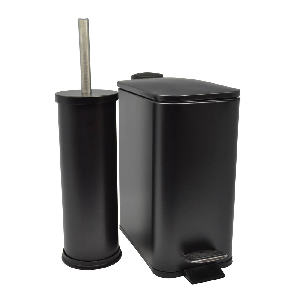 Πιγκάλ ανοξείδωτο σε μαύρο ματ χρώμα, μαύρο βουρτσάκι υψηλής αντοχής στο χρόνο καπάκι και μαύρη πλαστική βάση για αποφυγή φθοράς του δαπέδου.. Συνδυάστε το ιδανικά με πιγκάλ, κουρτίνα και καπάκι τουαλέτας και ανανεώστε εύκολα και οικονομικά το μπάνιο σας.