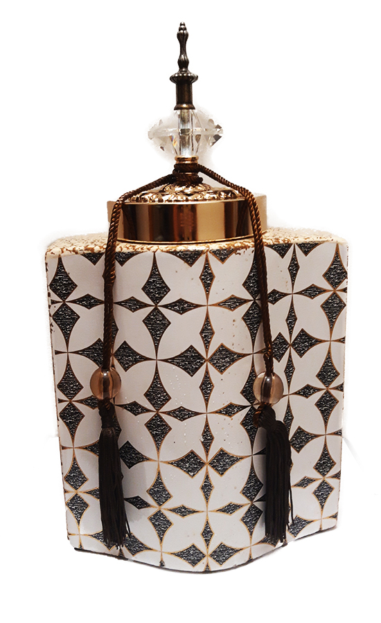 Βάζο Τζαρ Κεραμικό με καπάκι και διακοσμητική φούντα γκρί/εκρού/χρυσό.21x15x25εκ.