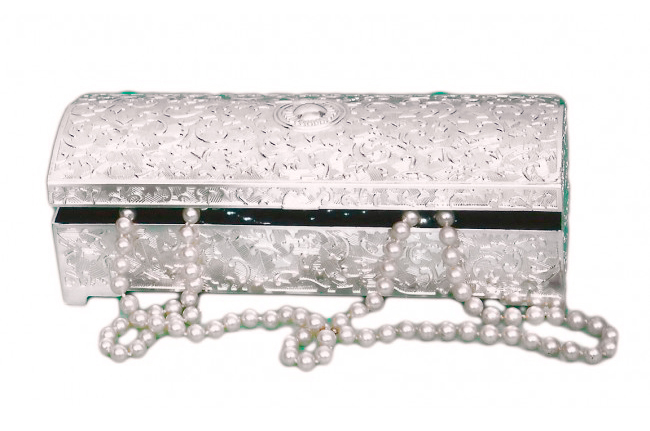 Μπιζουτιέρα επάργυρη λακαριστή ορθογώνια, με ανάγλυφα σχέδια. 22.5 x 10 x 7 CM