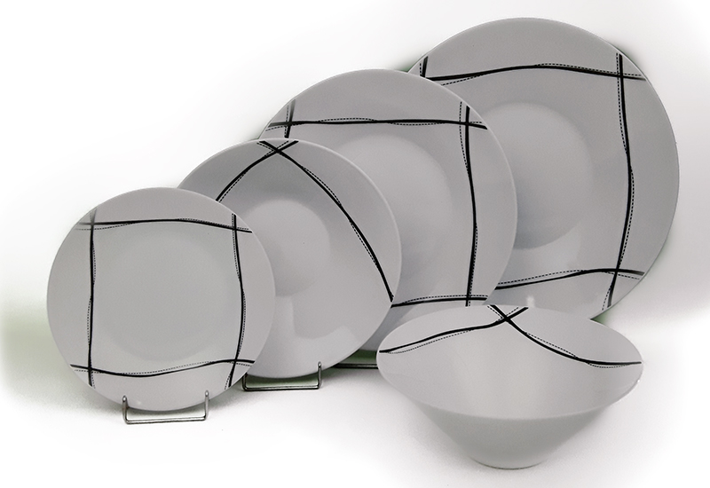 Σερβίτσιο φαγητού 20 τεμαχίων από υψηλής ποιότητας πορσελάνης, με αφηρημένα μοντέρνα μαύρα γραμμικά σχέδια.Το σετ αποτελείται:1 Πιατέλα1 Σαλατιέρα6 Πιάτα Βαθιά6 Πιάτα...
