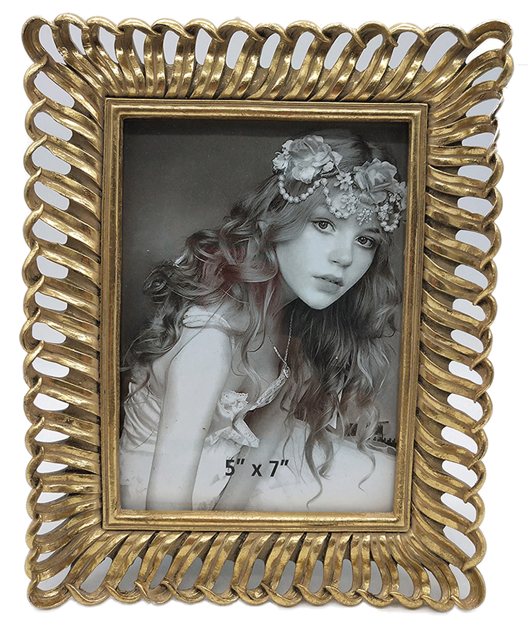 Κορνίζα από πολυεστέρα με σκαλιστό σχέδιο σε χρυσό χρώμα και βελούδινη μαύρη πλάτη. Διαστάσεις φωτογραφίας 13×18 εκατοστά, με εξωτερικό πάχος κορνίζας 2 εκατοστά. Η κορνίζα τοποθετείται οριζόντια και κάθετα.