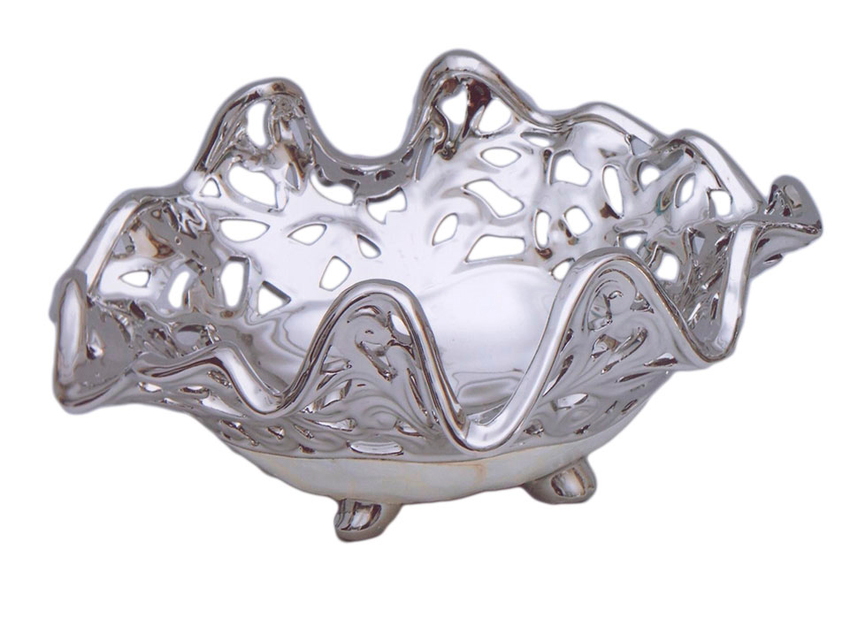 Κουπ κεραμικό διακοσμητικό σε ασημί με λευκό χρώμα.
