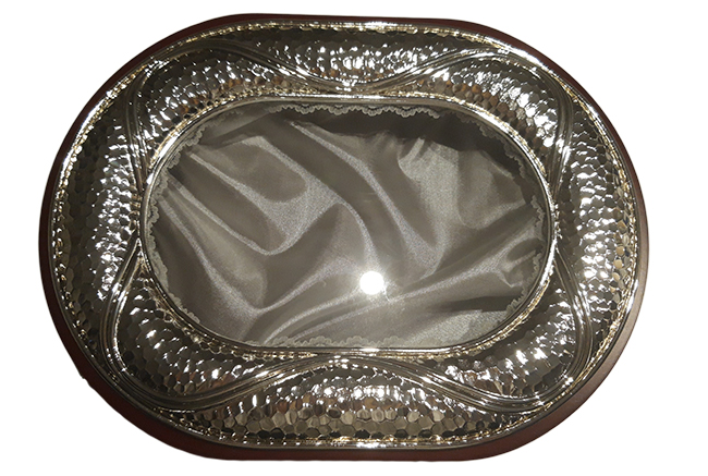 Στεφανοθήκη επάργυρη , λακαρισμένη , σφυρήλατη σχήμα οβάλ. 5,5x30 εκ.