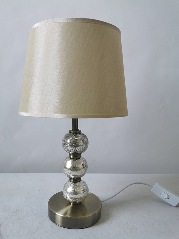 Φωτιστικό επιτραπέζιο μεταλλικό με διακοσμητικές γυάλινες μπάλες και υφασμάτινο καπέλο 40x20εκ.