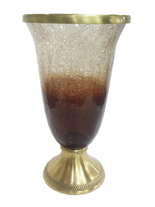 Βάζο γυάλινο διακοσμητικό κρακελέ με χρυσές αποχρώσεις στα τελειώματα 32x16εκ.