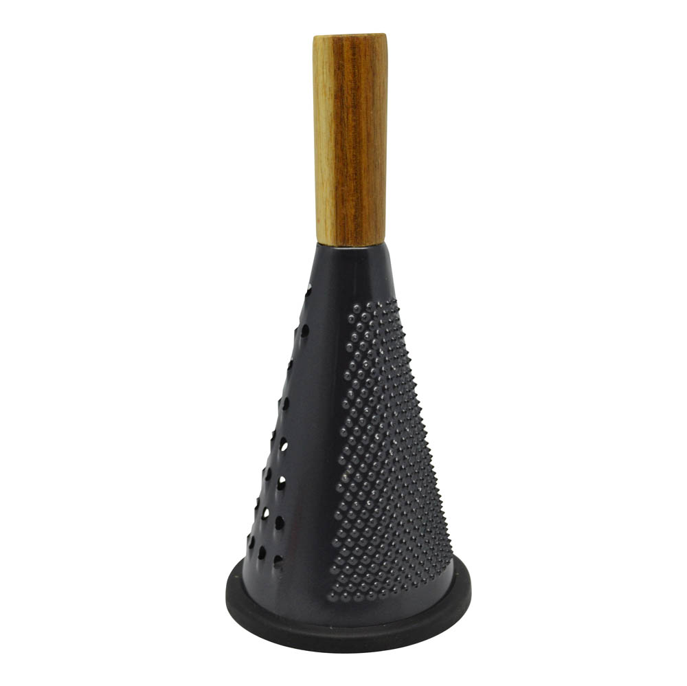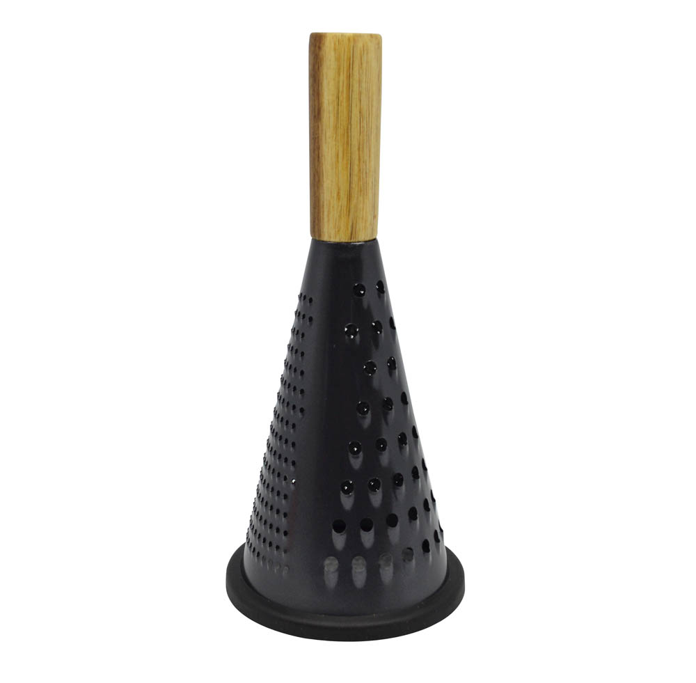 Τρίφτης ανοξείδωτος στρογγυλός σε μαύρο ματ χρώμα, διαθέτει δύο πλευρές για χοντρό και λεπτό τρίψιμο, έχει εργονομική ξύλινη λαβή και μαύρη αντιολισθητική βάση και μεγαλύτερη σταθερότητα.. Χρηστικά αντικείμενα για την κουζίνα σας, κομψά και μοντέρνα καθημερινής χρήσης σε λιτές γραμμές. Συνδυάστε τα με τα υπόλοιπα αντικείμενα της σειράς και ανανεώστε τον χώρο σας.