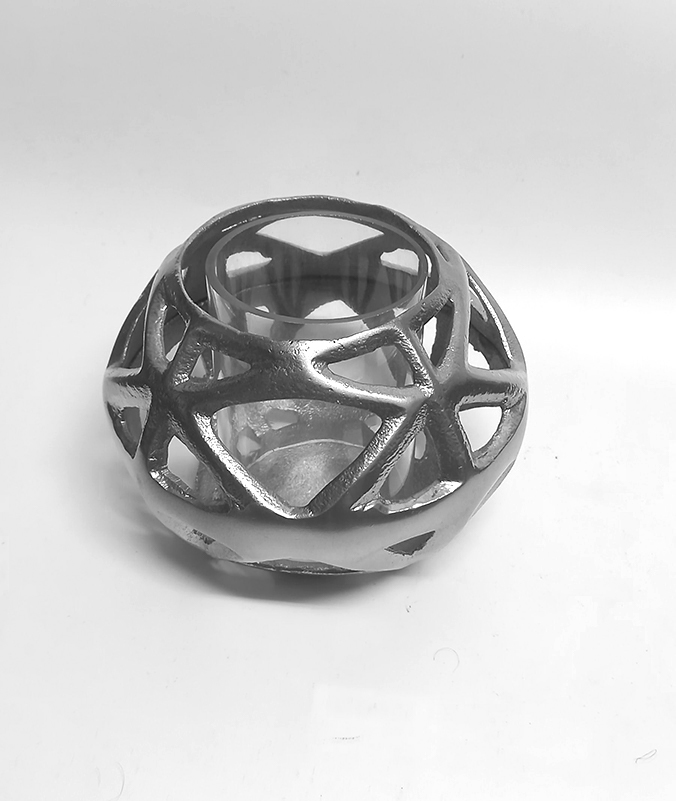 Κηροπήγιο Ασημί Με Γυαλί Μεταλλικό 31εκ.