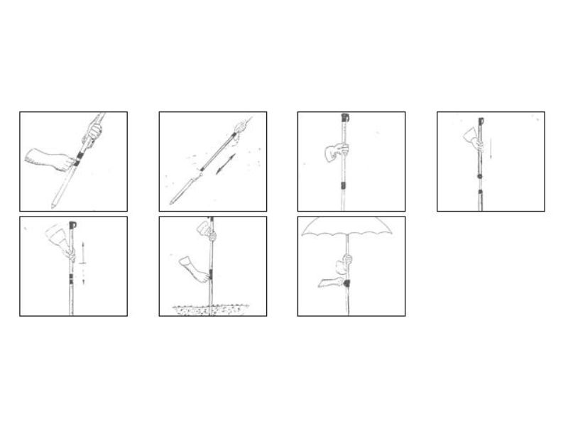 Χτυπώντας τη μεταλλική μύτη, παρασύρει το μισό κάτω μέρος του κονταριού στο έδαφος χωρίς ιδιαίτερη δύναμη και προσπάθεια. Στη συνέχεια σφίγγουμε το σφιγκτήρα και τοποθετούμε την ομπρέλα όπως και πριν