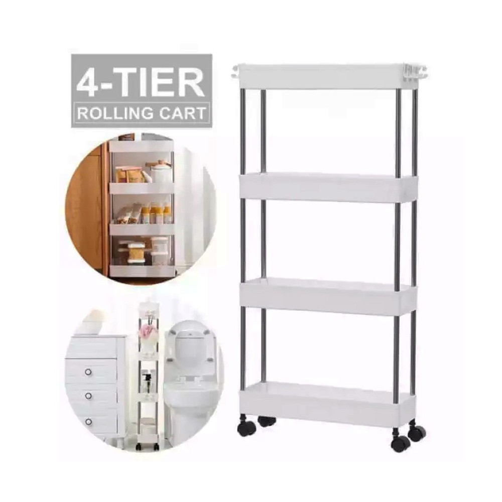 Slim Τροχήλατη Ραφιέρα Κουζίνας/Μπάνιου για στενούς χώρους-4 Ράφια 80χ39χ12,5cm c.j Maripel XYX-2020A