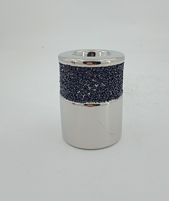Διακοσμητικό Ασημί Κεραμικό Κηροπήγιο Με Μαύρα Στρας 7.5x7.5x10cm.
