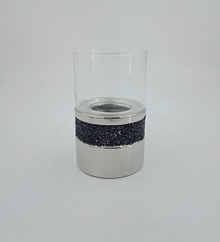 Κηροπήγιο Για Ρεσώ Κεραμικό Σε Ασημί Χρώμα Με Γυαλί Και Στρας 10x10x18cm.