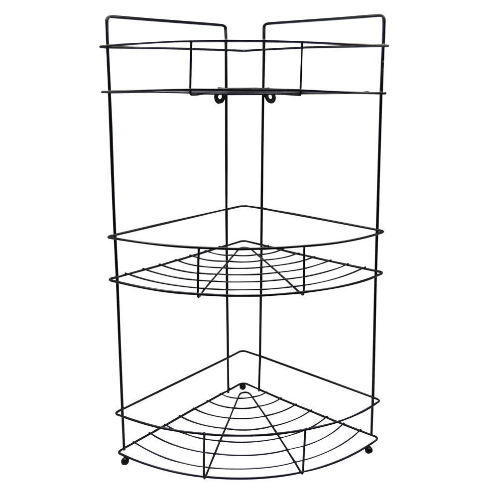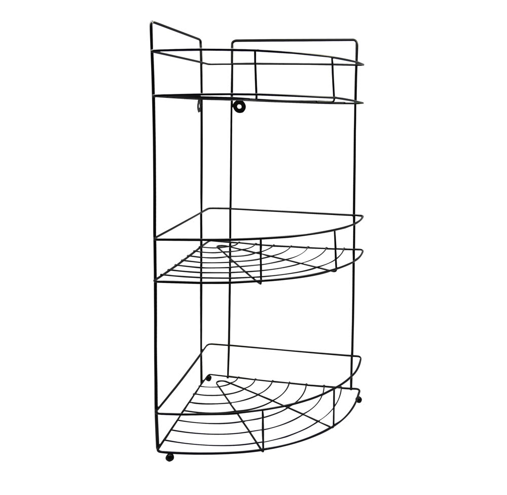 Ραφιέρα μπάνιου γωνιακή, μεταλλική σε μαύρο ματ χρώμα, τριών θέσεων, με δυνατότητα να κρεμαστεί και στον τοίχο.