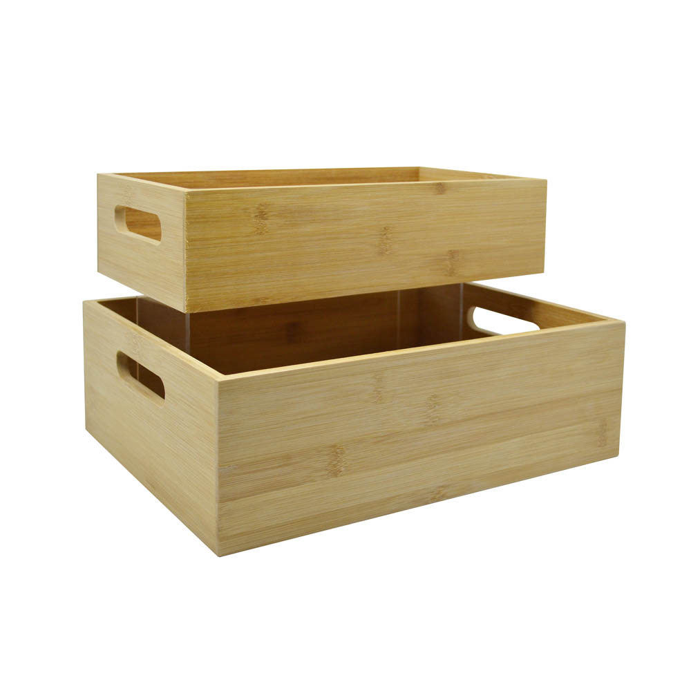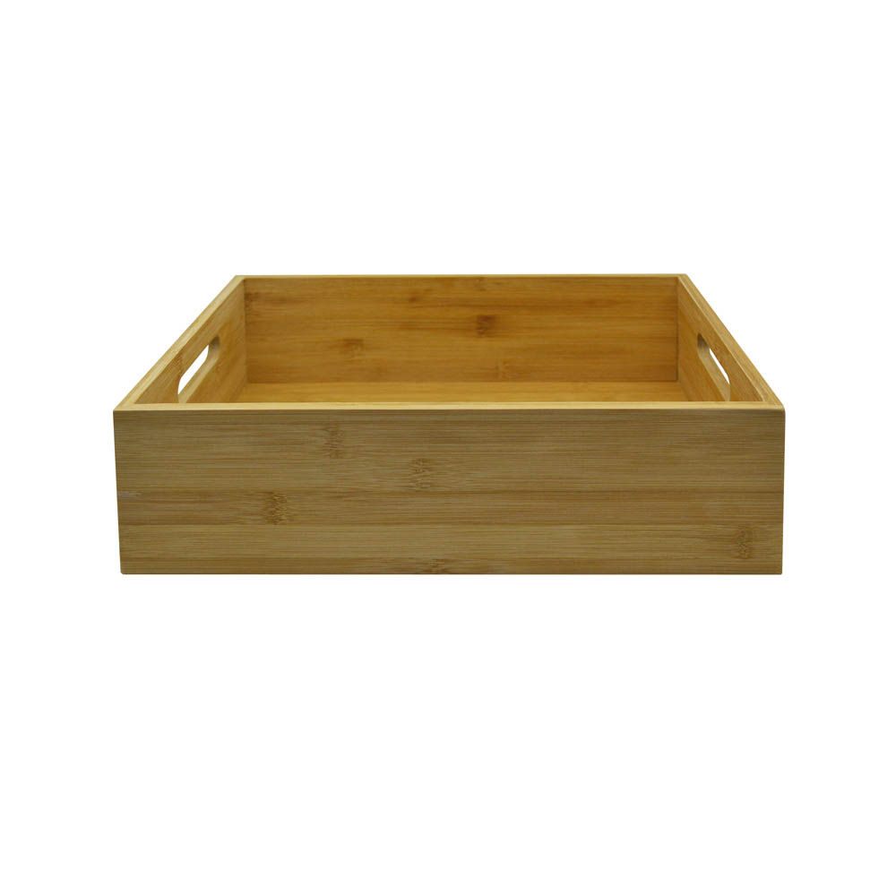 Καλαθάκι αποθήκευσης από ξύλο μπαμπού, με λαβές για ευκολία στη χρήση. Ιδανικό για την οργάνωση της κουζίνας, του γραφείου ή του μπάνιου.