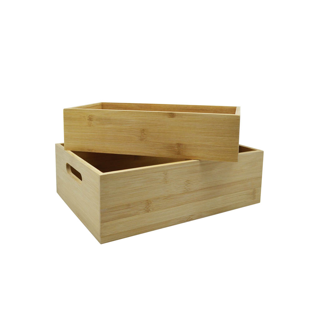 Καλαθάκι αποθήκευσης από ξύλο μπαμπού, με λαβές για ευκολία στη χρήση. Ιδανικό για την οργάνωση της κουζίνας, του γραφείου ή του μπάνιου.