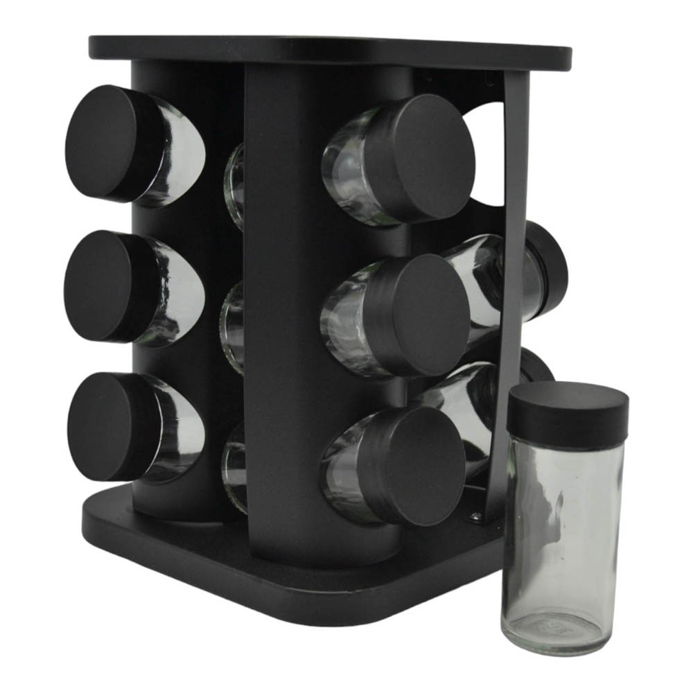 Βάση μεταλλική περιστρεφόμενη σε μαύρο χρώμα, η οποία διαθέτει δώδεκα γυάλινα βαζάκια κατάλληλα για αποθήκευση μπαχαρικών.. Χρηστικά αντικείμενα με μοντέρνο και κομψό σχεδιασμό απαραίτητα για κάθε κουζίνα. Οργανώστε τον χώρο σας διαλέγοντας ανάμεσα από την μεγάλη ποικιλία της σειράς μας!