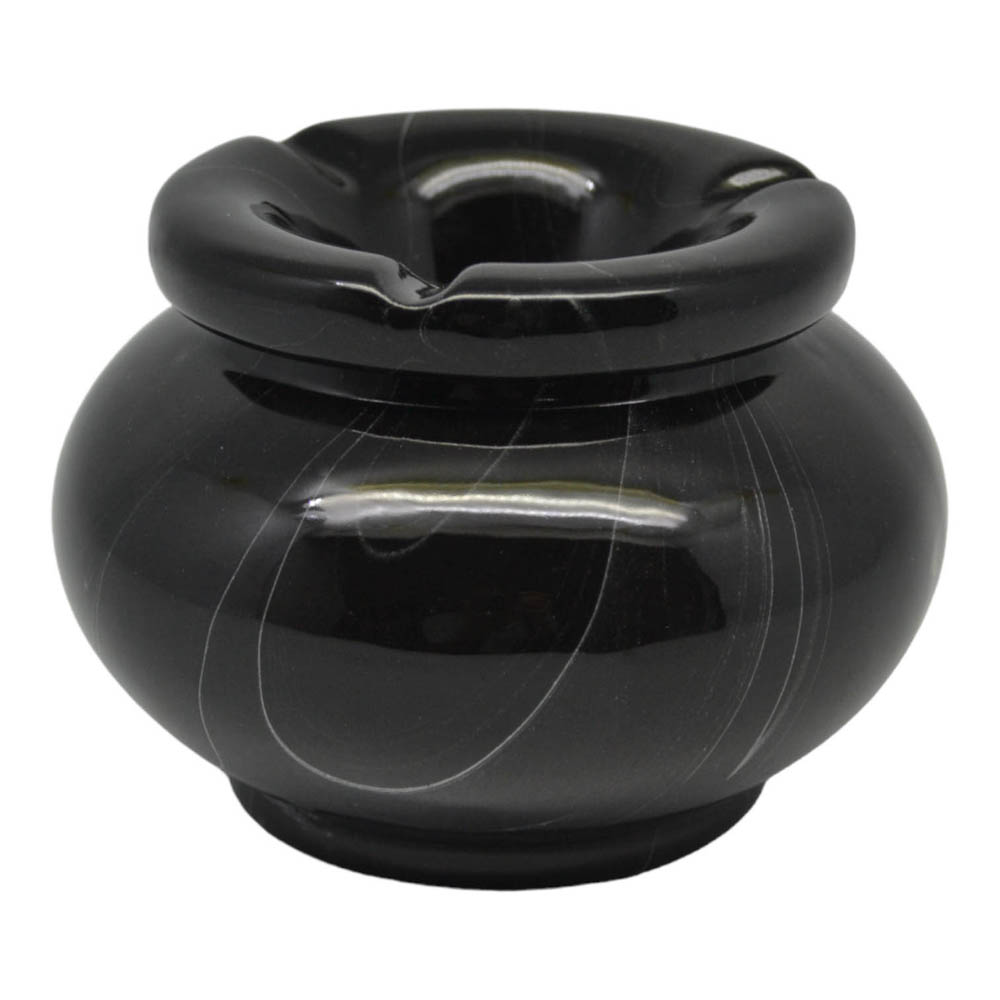 Τασάκι με καπάκι κεραμικό αντιανεμικό σε μαύρο χρώμα με διακόσμηση εφέ μάρμαρο.