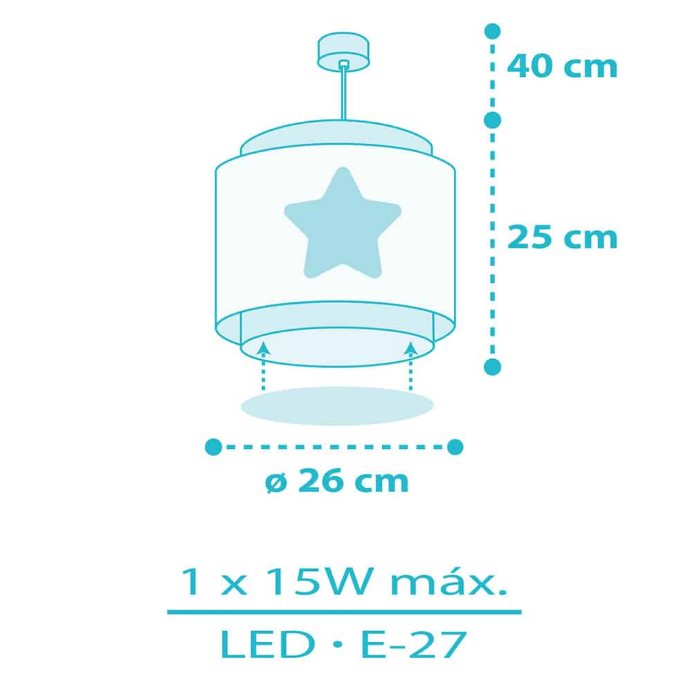 Καλωσορίστε το παιδί σας σε ένα δωμάτιο πλημμυρισμένο από μαγεία με αυτό το παιδικό φωτιστικό οροφής με διακριτικό θέμα και απαλά χρώματα. To Baby Dreams Blue παιδικό φωτιστικό οροφής είναι κατάλληλο για γενικό φωτισμό. Είναι διπλού τοιχώματος, με διάφανο το εξωτερικό του τοίχωμα και μαγικά φωσφορίζοντα μέρη στο σκοτάδι. Κατασκευασμένο από συνθετικό υλικό αντοχής πολυπροπυλενίου και ανεξίτηλες εκτυπώσεις. Παρέχεται διαχυτής φωτός για τις μικρότερες ηλικίες προσφέροντας ομοιόμορφο φωτισμό. Το κιτ ανάρτησης είναι πλήρες και περιέχει σετ γάντζου, καλώδιο ρυθμιζόμενο στο ύψος καθώς και ροζέτα κάλυψης σημείων σύνδεσης & στήριξης. Το Baby Dreams Blue παιδικό φωτιστικό οροφής τοποθετείται εύκολα και είναι κατασκευασμένο εξ ολοκλήρου στην Ευρώπη.