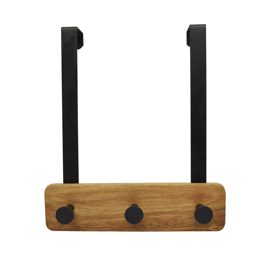 Κρεμάστρα πόρτας τριών θέσεων μαύρη ματ μεταλλική με συνδυασμό από ξύλο ακακίας και μαύρα στρογγυλά κρεμαστράκια. Είναι πολύ πρακτική καθώς δεν χρειάζεται τρύπημα και μπορείτε να τη τοποθετήσετε ανάλογα με το που την χρειάζεστε.