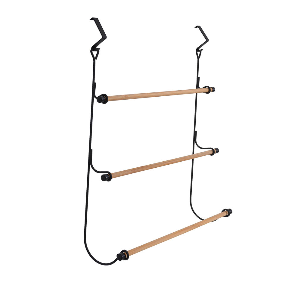 Κρεμάστρα πόρτας μεταλλική σε μαύρο χρώμα με τρεις ράγες από ξύλο μπαμπού διαμέτρου 12mm.