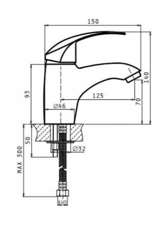 Pyramis Sistina Αναμεικτική Μπαταρία Νιπτήρα Ασημί