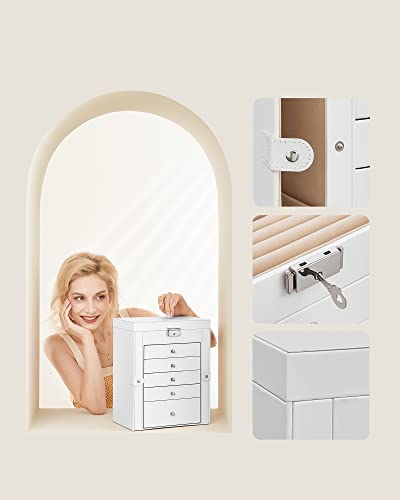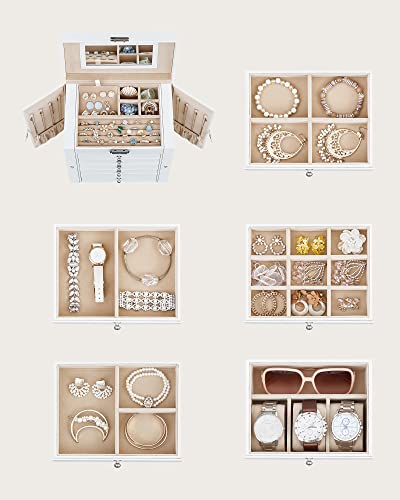 Songmics Κουτί Αποθήκευσης Κοσμημάτων 6 Επιπέδων με Καθρέπτη και Κλειδαριά - White - JBC152W01