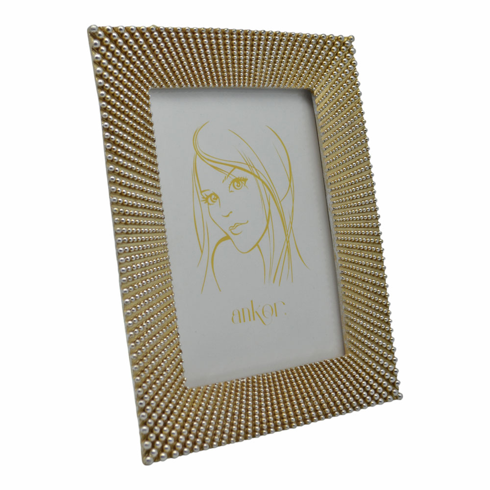 Κορνίζα πολυεστερική με χρυσό πλαίσιο στολισμένο με ασημένιες πέρλες, συνδυάζει μοντέρνα αισθητική με κλασική λάμψη. Ιδανική για κομψή διακόσμηση σε μοντέρνους ή κλασικούς χώρους, προσθέτοντας μια πινελιά πολυτέλειας και λάμψης σε κάθε δωμάτιο.