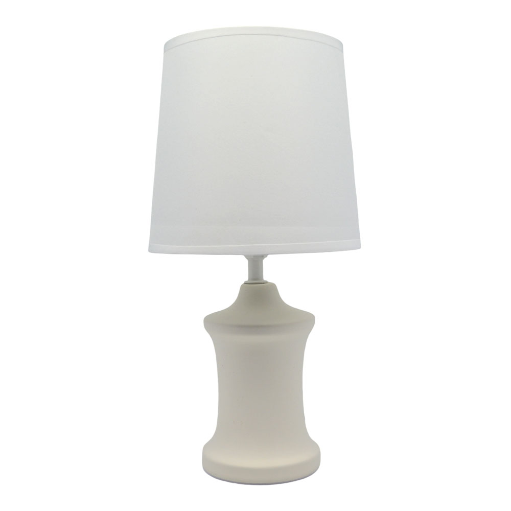 Πορτατίφ κεραμικό με μοντέρνο σχεδιασμό και υφασμάτινο καπέλο σε εκρού χρώμα. Κατάλληλο για λαμπτήρα Ε14 ΜΑΧ 40W, ο οποίος δεν περιλαμβάνεται στη συσκευασία.