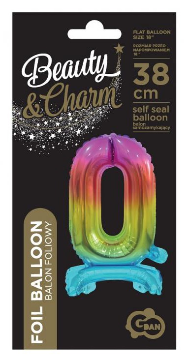 Rainbow, Colorful Mini 0 Foil Balloon with Base 38 cm