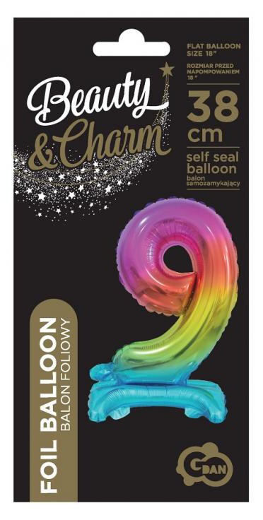 Number Rainbow Colorful mini number 9 foil balloon with base 38 cm