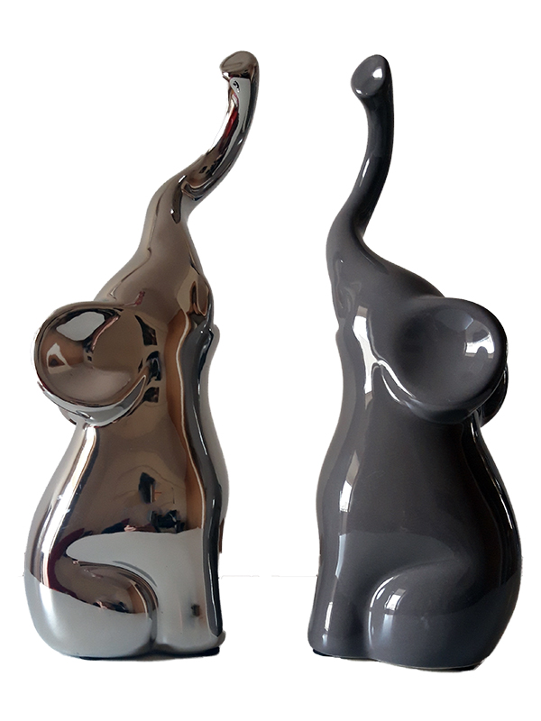 Ελέφαντας διακοσμητικός κεραμικός σε ασημί χρώμα με γκρίζες λεπτομέρειες, σετ 2 τεμαχίων.Διατίθεται σε δυο διαστάσεις 34x9εκ. και 26x8x8εκ.