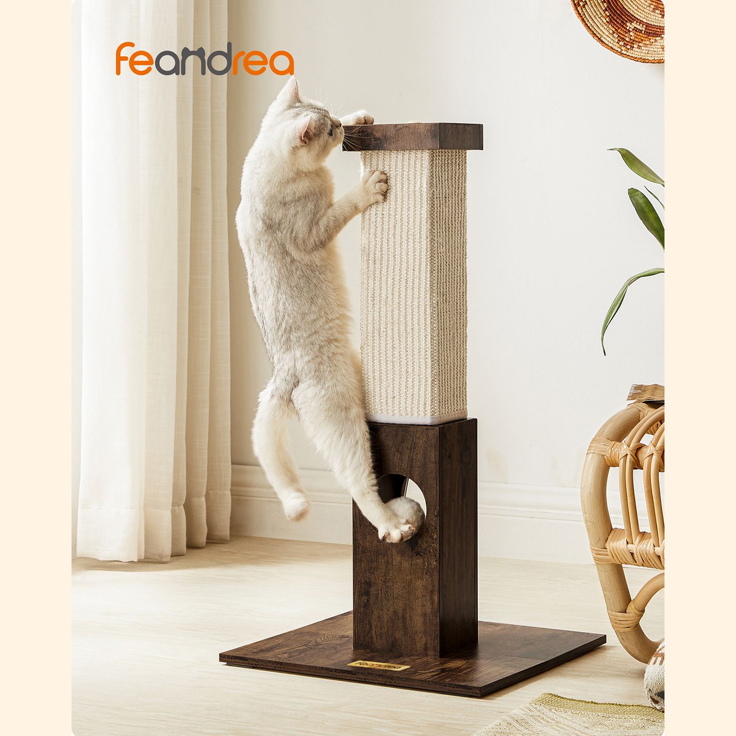 Stable and Safe: With a 38 x 38 cm base and 4 non-slip pads, this cat scratching post provides a stable and safe place to scratch, play and climb for your little one without tipping over