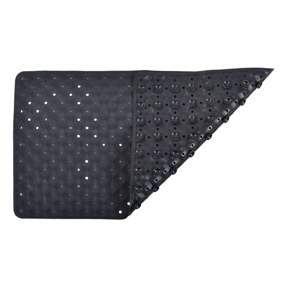 Αντιολισθητικό πατάκι μπανιέρας από PVC σε κομψό μαύρο χρώμα. Εξοπλισμένο με βεντούζες στο κάτω μέρος, εξασφαλίζει απόλυτη σταθερότητα και ασφάλεια κατά τη χρήση.
