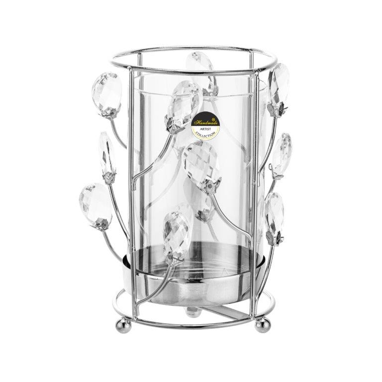 Κηροπήγιο Γυάλινο/ Μέταλλο Με Ασημί Διακοσμητικές Διακλαδώσεις 11.8x11.8x19.2cm.