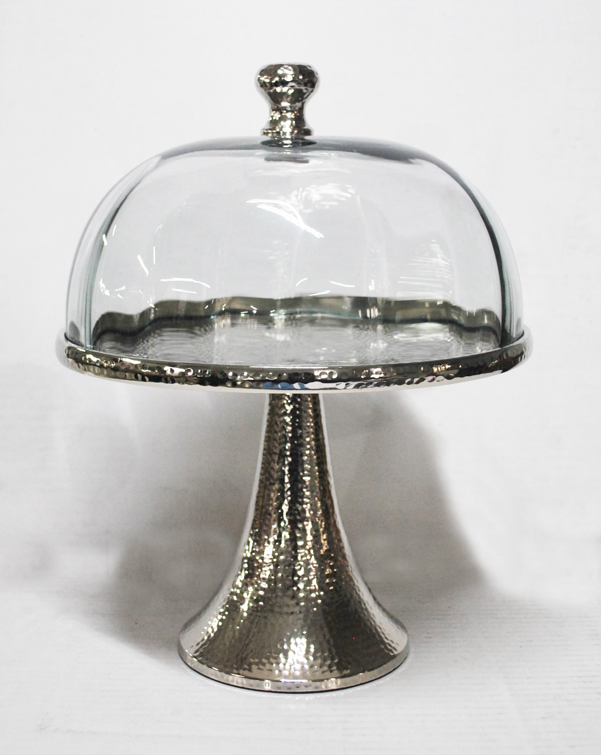 Τουρτιέρα Μεταλλική με Καπάκι Γυάλινο & Πόδι Ασημί 26x26x32cm.