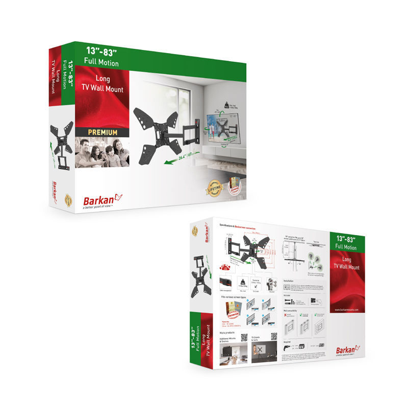 Βάση Τηλεόρασης Τοίχου 3400L.B Barkan 13" - 83" με Βραχίονα και Κλίση