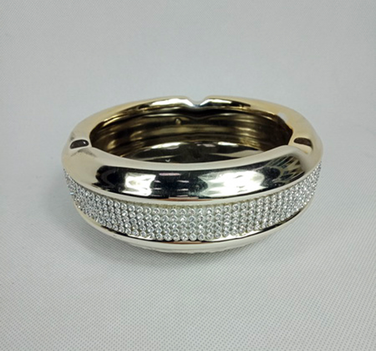 Τασάκι ασημί στρογγυλό κεραμικό με στρας.