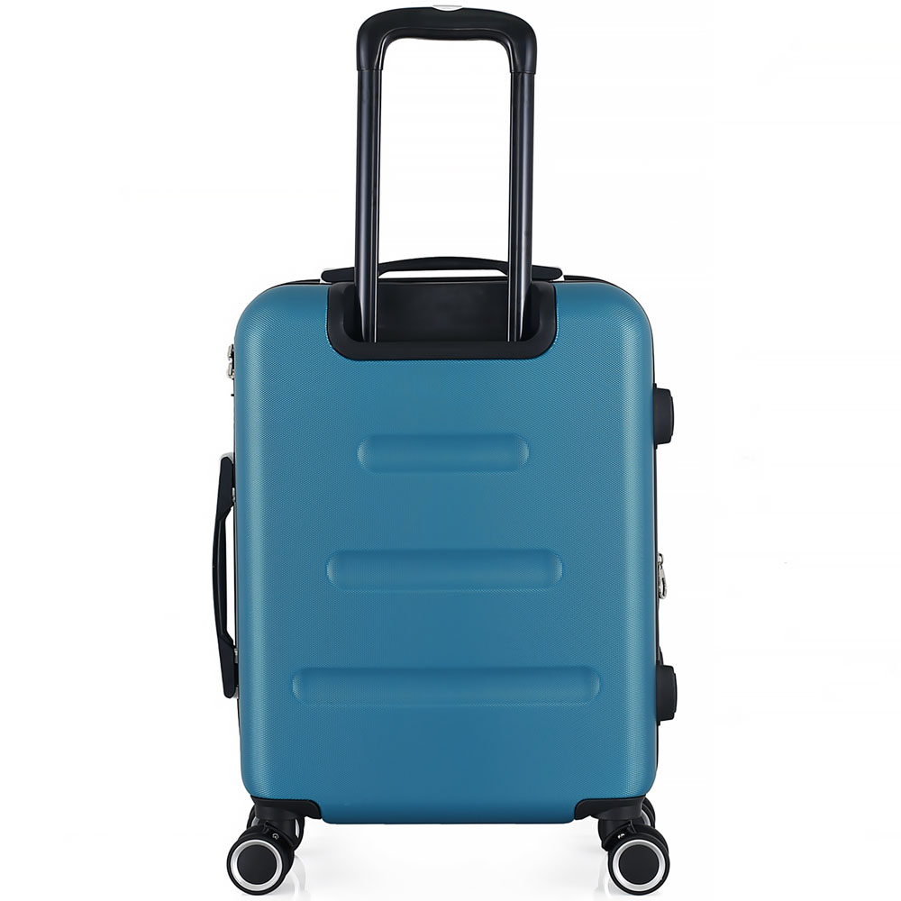 Σετ βαλίτσες από σκληρό ABS το οποίο περιλαμβάνει μια βαλίτσα καμπίνας 37x21x55εκ. και μια μεσαία βαλίτσα 41x26x65εκ. Διαθέτουν δυνατότητα επέκτασης του πλάτους τους κατά 5εκ., 4 διπλές ρόδες, τηλεσκοπικό χερούλι κ αριθμητική κλειδαριά για ασφάλεια.. Οι βαλίτσες είναι κατασκευασμένες από ανθεκτικό σκληρό πλαστικό, προσφέροντας ασφάλεια για τα προσωπικά σας αντικείμενα στις μετακινήσεις. Η μικρή βαλίτσα διαθέτει διαστάσεις που πληρούν τις προδιαγραφές για χειραποσκευή σε αεροπλάνο, επιτρέποντάς σας να τη χρησιμοποιείτε με άνεση σε κάθε ταξίδι. Έχουν δυνατότητα επέκτασης κατά 5 εκατοστά, παρέχοντας πρόσθετο χώρο αποθήκευσης όταν χρειάζεται. Οι 4 διπλές ανθεκτικές ρόδες εξασφαλίζουν ομαλή κίνηση σε κάθε επιφάνεια, ενώ το τηλεσκοπικό χερούλι προσαρμόζεται στο ύψος σας για άνετη χρήση. Οι βαλίτσες διαθέτουν θήκη με δίχτυ για εύκολη οργάνωση των αντικειμένων σας και αριθμητική κλειδαριά για απόλυτη ασφάλεια. Διάσταση Κιβωτίου 45x26x67. Βάρος Μεγάλης 3,50kg και Βάρος Μικρής 2,70kg.