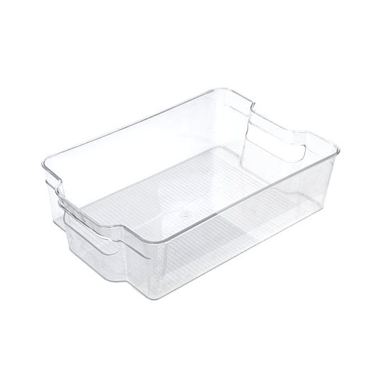 Διάφανη θήκη από ανθεκτικό πλαστικό PET, ιδανική για την τακτοποίηση τροφίμων, μπουκαλιών και συσκευασιών μέσα στο ψυγείο. Διαθέτει πρακτικές λαβές για εύκολη μετακίνηση και διαφανές σώμα ώστε να βλέπετε το περιεχόμενο με μια ματιά.. Το PET (Polyethylene Terephthalate) είναι πλαστικό υψηλής αντοχής, ιδανικό για επαφή με τρόφιμα. Ξεχωρίζει για τη διαφάνεια, τη μεγάλη ανθεκτικότητα σε κρούσεις και τη δυνατότητα ανακύκλωσης, καθιστώντας το ιδανικό για σκεύη και δοχεία αποθήκευσης.