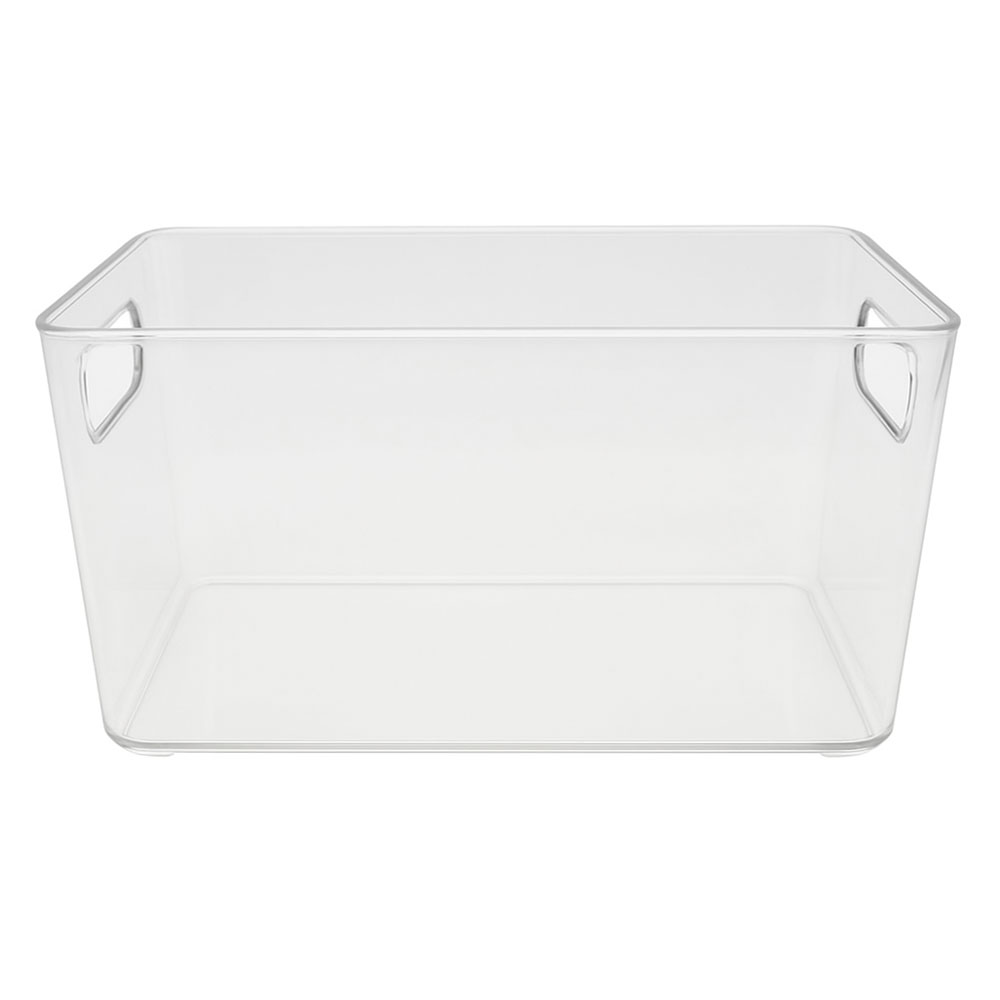 Διάφανη θήκη από ανθεκτικό πλαστικό PET, ιδανική για την τακτοποίηση τροφίμων, μπουκαλιών και συσκευασιών μέσα στο ψυγείο. Διαθέτει πρακτικές λαβές για εύκολη μετακίνηση και διαφανές σώμα ώστε να βλέπετε το περιεχόμενο με μια ματιά.. Το PET (Polyethylene Terephthalate) είναι πλαστικό υψηλής αντοχής, ιδανικό για επαφή με τρόφιμα. Ξεχωρίζει για τη διαφάνεια, τη μεγάλη ανθεκτικότητα σε κρούσεις και τη δυνατότητα ανακύκλωσης, καθιστώντας το ιδανικό για σκεύη και δοχεία αποθήκευσης.