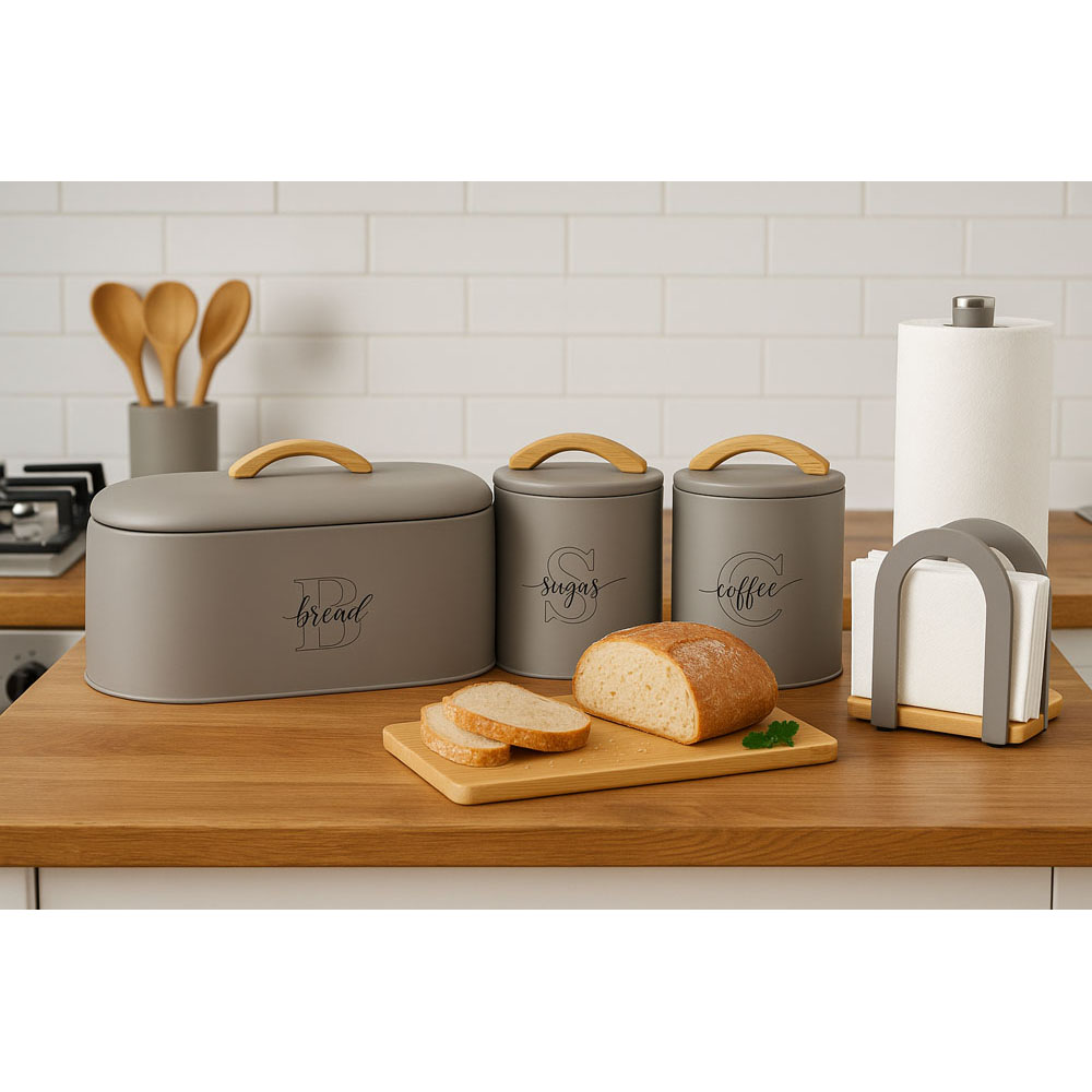 Χαρτοπετσετοθήκη μεταλλική σε taupe ματ χρώμα με ξύλο μπαμπού στο κάτω μέρος. Χρηστικά αντικείμενα με μοντέρνο και κομψό σχεδιασμό απαραίτητα για κάθε κουζίνα. Οργανώστε τον χώρο σας διαλέγοντας ανάμεσα από την μεγάλη ποικιλία της σειράς μας.