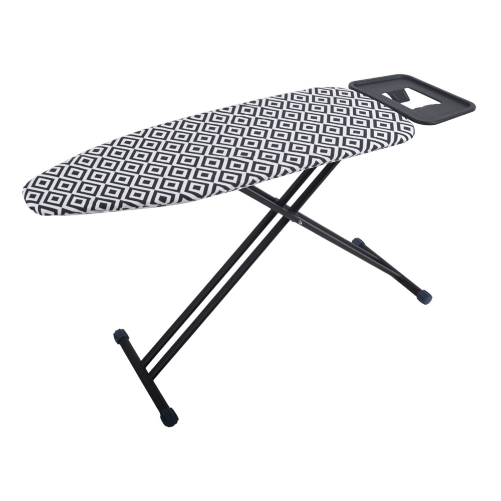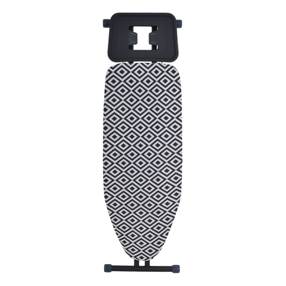 Σιδερώστρα με μεταλλικά μαύρα ματ πόδια, μεγάλη επιφάνεια σιδερώματος, ρύθμιση και ασφάλεια ύψους από 71 έως 94εκ.,θέση τοποθέτησης για το σίδερο και αντιολισθητικά ποδαράκια για μεγάλη ευστάθεια και σταθερότητα. Διαθέτει κάλυμμα 100% βαμβακερό.. Σιδερώστρα ατμού κατασκευασμένη από μέταλλο Φ19x34-38 mm, βαμμένο με ηλεκτροστατική βαφή σε μαύρο ματ χρώμα, μεγάλης ανθεκτικότητας στο χρόνο. Διαθέτει 100% βαμβακερό κάλυμμα και ειδική επιφάνεια με πλέγμα για την καλύτερη κυκλοφορία του ατμού με αποτέλεσμα άψογο και γρήγορο σιδέρωμα. Έχει δυνατότητα ρύθμισης του ύψους από 71 έως 94 εκατοστά ανάλογα με τις ανάγκες σας, θέση τοποθέτησης για το σίδερο και αντιολισθητικά ποδαράκια για μεγάλη ευστάθεια και σταθερότητα. Η συνολική διάσταση της σιδερώστρας είναι 45x150εκ. και η διάσταση επιφάνειας σιδερώματος είναι 45x120εκ. Κλείνει και αποθηκεύεται εύκολα όταν δεν χρησιμοποιείται.
