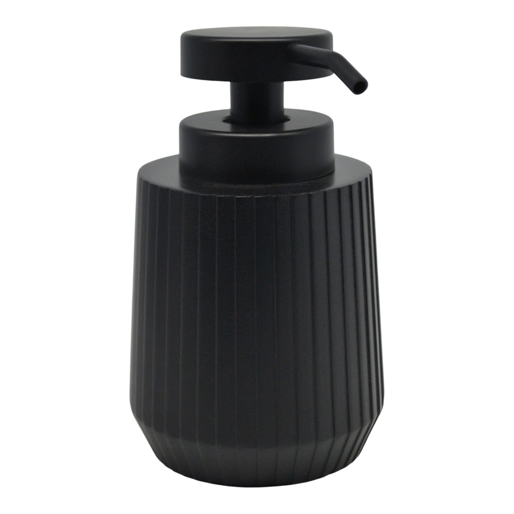 Σαπουνοθήκη για υγρό σαπούνι πολυεστερική σε μαύρο ματ χρώμα με κάθετη ριγωτή διακόσμηση και αντλία στο ίδιο χρώμα. Ο μοντέρνος σχεδιασμός του προσφέρει μίνιμαλ αισθητική...