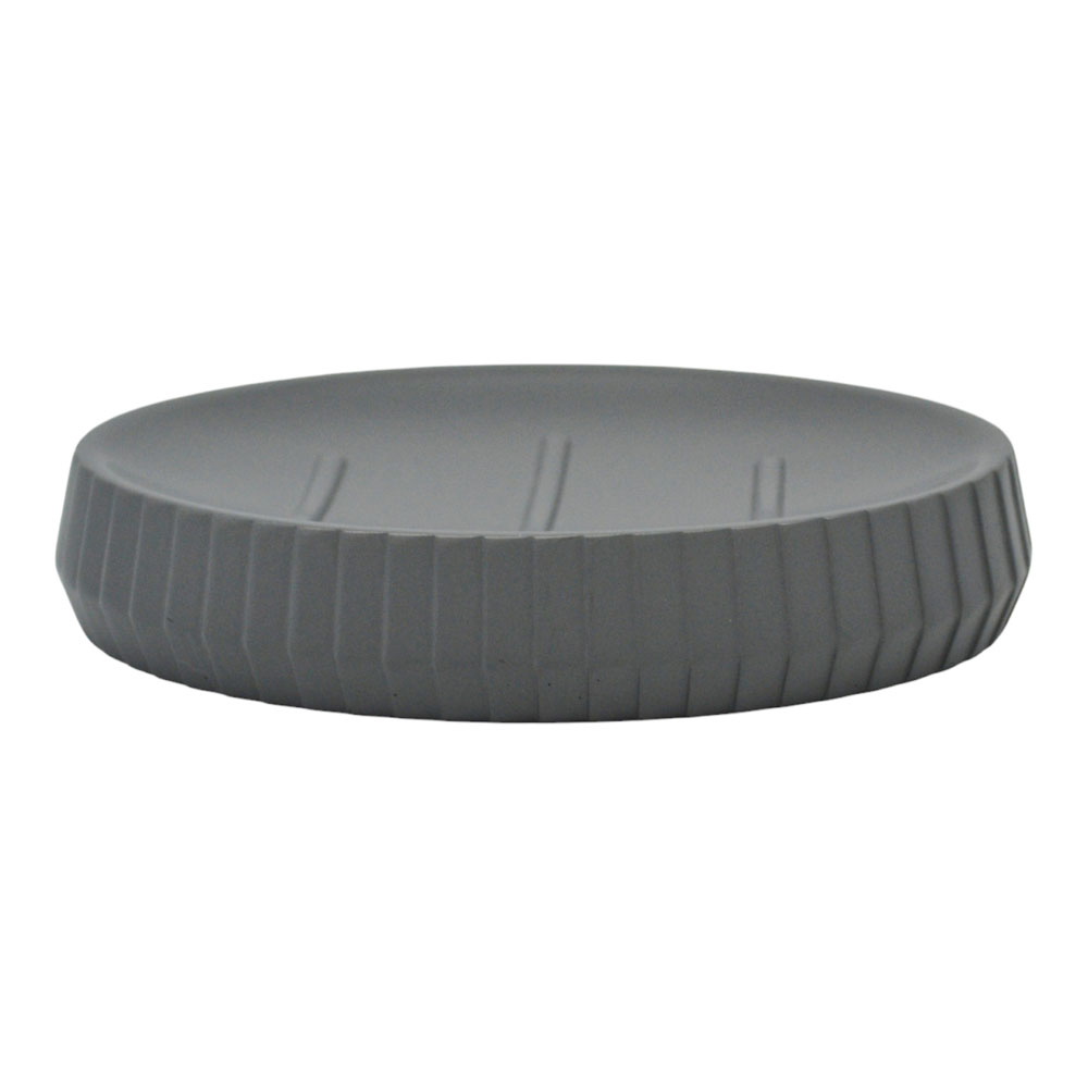 Σαπουνοθήκη πολυεστερική σε γκρι ματ χρώμα με κάθετη ριγωτή διακόσμηση. Ο μοντέρνος σχεδιασμός της προσφέρει μίνιμαλ αισθητική και ταιριάζει ιδανικά σε κάθε μπάνιο.