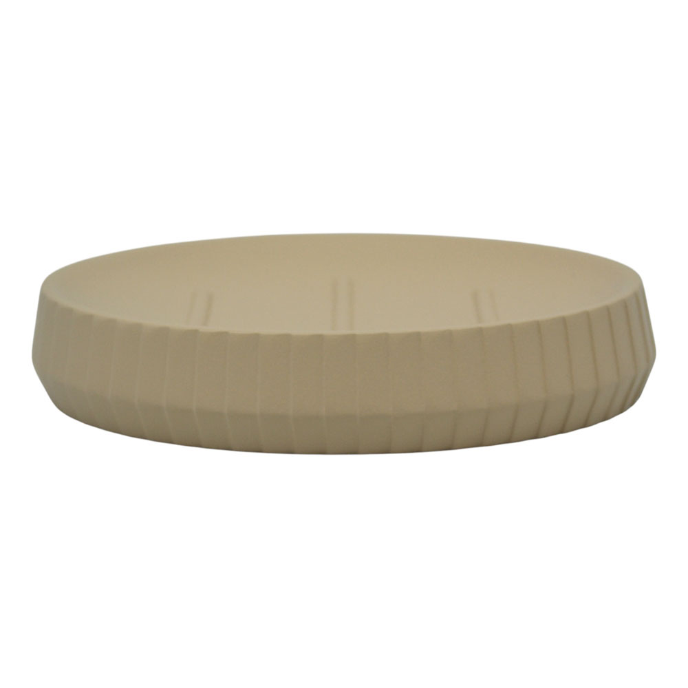 Σαπουνοθήκη πολυεστερική σε μπεζ ματ απόχρωση με κάθετη ριγωτή διακόσμηση. Ο μοντέρνος σχεδιασμός της προσφέρει μίνιμαλ αισθητική και ταιριάζει ιδανικά σε κάθε μπάνιο.